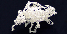 Bei ihren Tieren bildet sich erst im Laufe des schöpferischen Prozesses der Inhalt aus, vage Vorstellungen nehmen Kontur an, das Gebilde erhält langsam konkrete Gestalt. In der kugeligen Form nutzt Böger die uniforme Zellenstruktur des Knüpferli–Spiels,